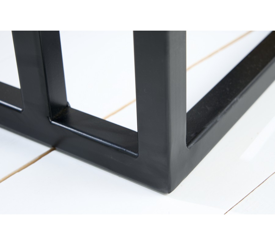 Rám stolíka je vyrobený z kovu v matnej čiernej farbe. Podstava a konštrukcia na uloženie vrchnej dosky majú obdĺžnikový tvar. Na kratšej strane ich spájajú štyri nožičky, medzi ktorými je umiestnená úzka polica s vysokými bočnými stenami. Jej tvar je ideálny na uloženie novín, kníh či časopisov.