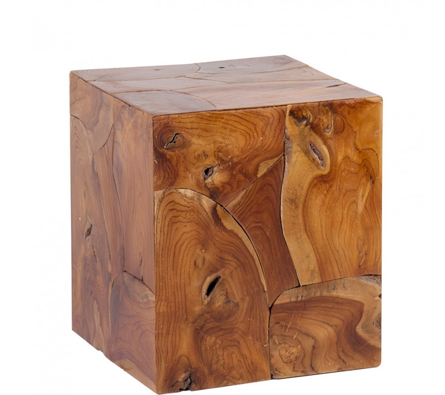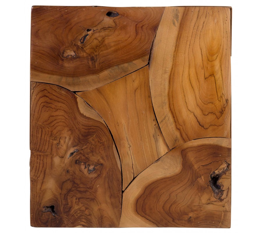 Moderný masívny podstavec Cubus z teakového dreva s výraznou kresbou letokruhov v prírodných odtieňoch hnedej 50 cm