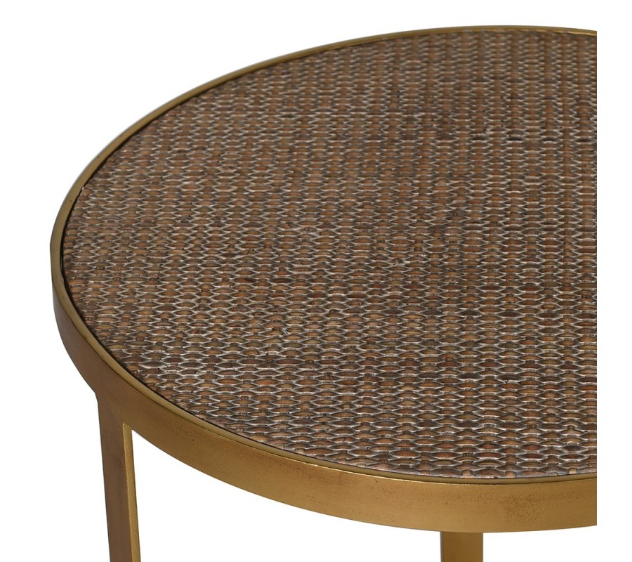 Sada príručných stolíkov Diveni Gold je skvelým doplnkom do moderne zariadenej obývačky v naturálnych svetlých odtieňoch. Zlatá farba dodá miestnosti pocit luxusu a môžete ich skombinovať napríklad s kreslom so zlatými kovovými nožičkami. Sú tiež ideálnou voľbou do menších priestorov, kde príležitostne potrebujete väčšiu odkladaciu plochu. Premyslený dizajn zaručuje maximálnu flexibilitu a vďaka priehľadnej vrchnej doske vynikne krása ratanového výpletu v každej konfigurácii.