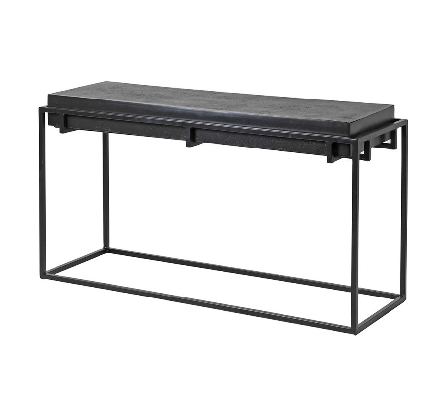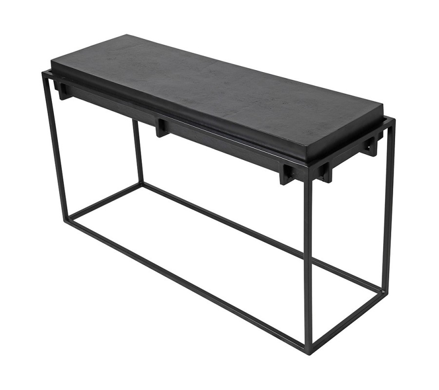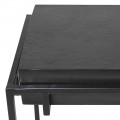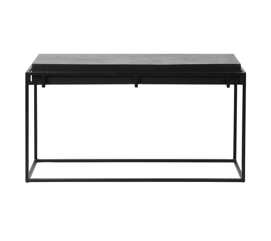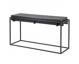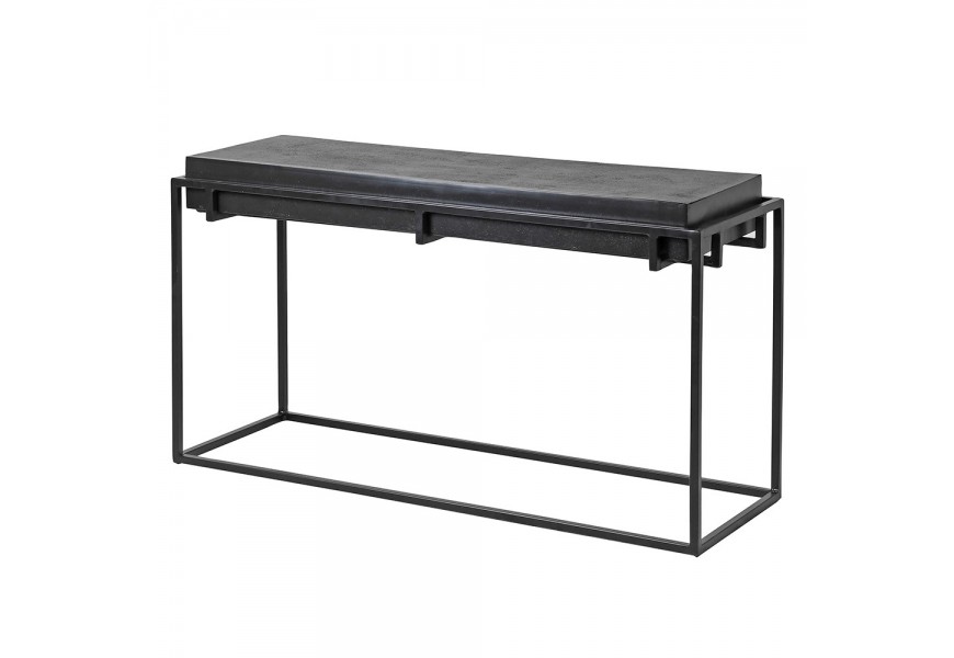 Dizajnový industriálny čierny príručný stolík Black Iron s hrubou obdĺžnikovou vrchnou doskou s výraznou štruktúrou 104 cm
