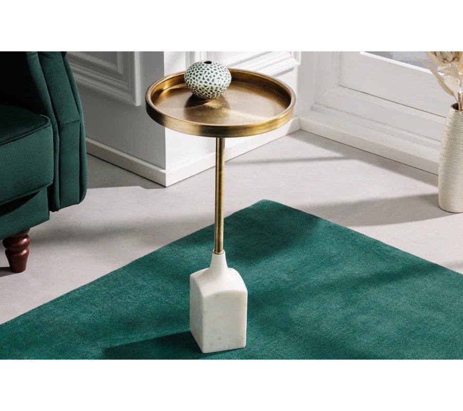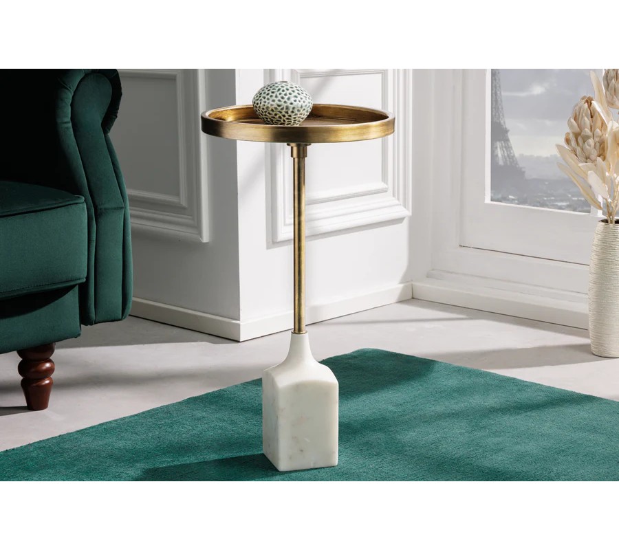 Stolík je ideálny do glamour, moderných alebo art deco interiérov, kde sa môže využiť vedľa pohovky, kresla alebo ako štýlový nočný stolík. Hodí sa k nábytku a doplnkom v zlatých, bielych alebo mramorových tónoch. Výborne sa kombinuje so sviečkami, elegantnými lampami alebo menšími dekoráciami, ktoré nechajú vyniknúť jeho luxusný a minimalistický dizajn.