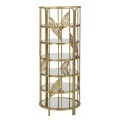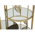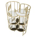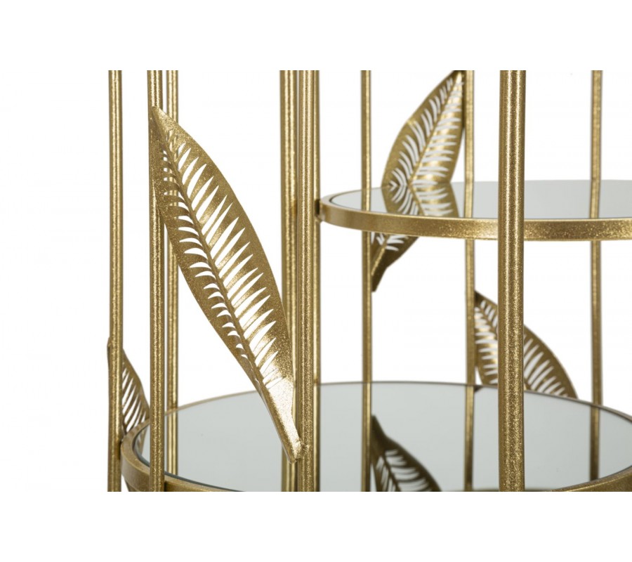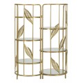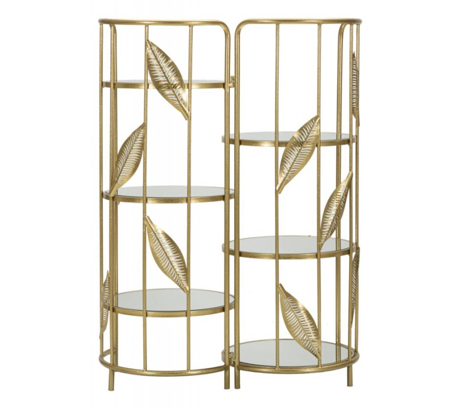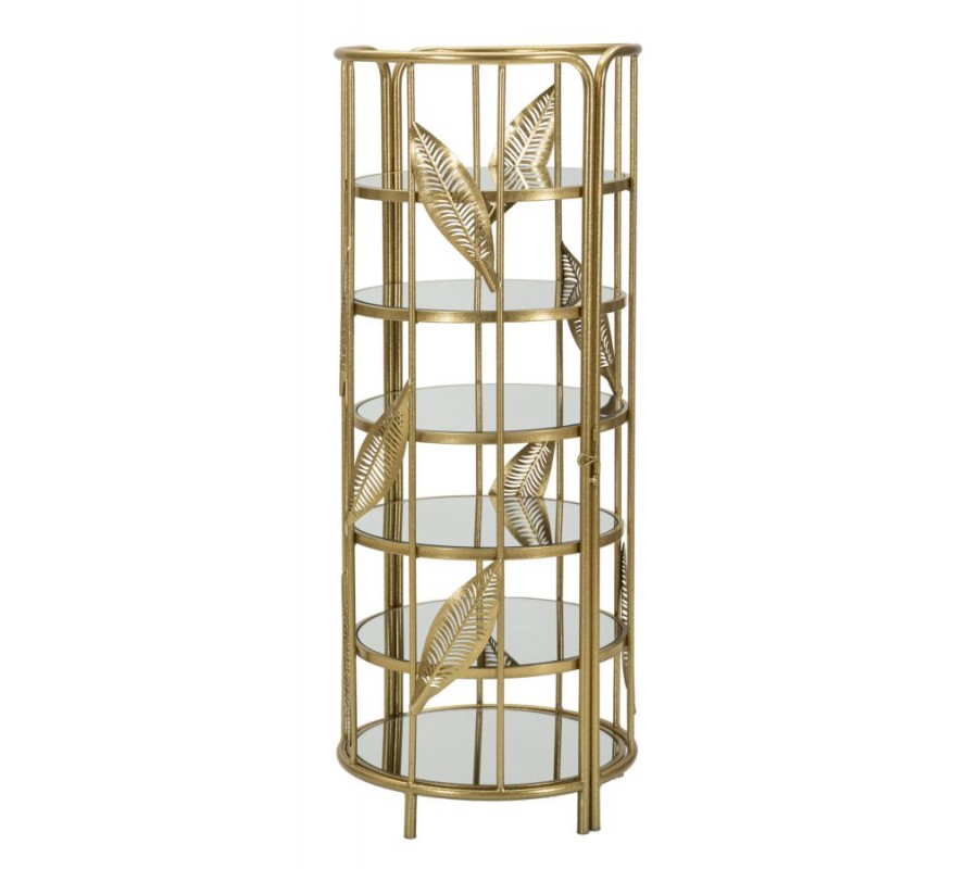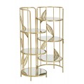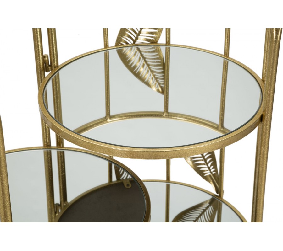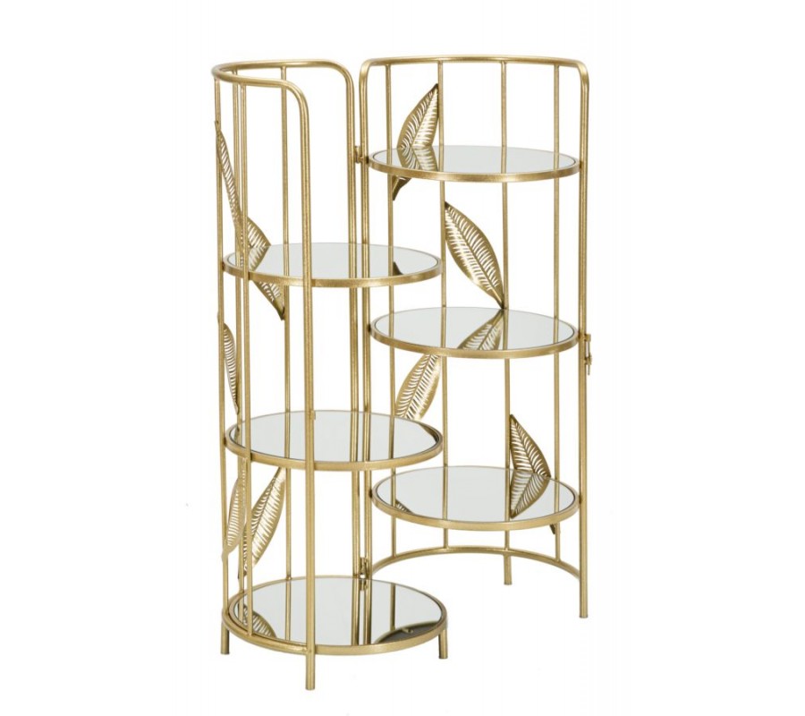 Dizajnový glamour skladací regál Natura Elegante v zlatej farbe s florálnym zdobením a zrkadlovými policami 90 cm