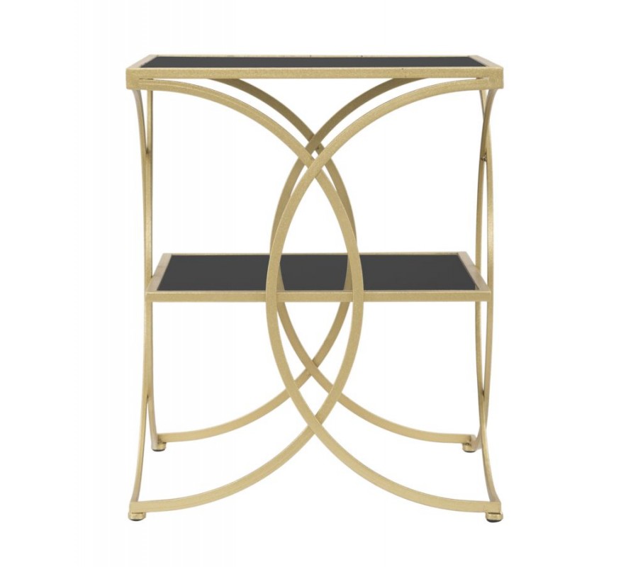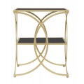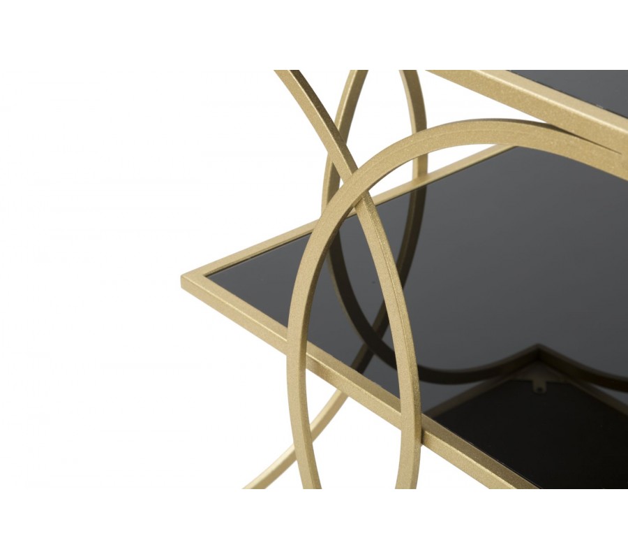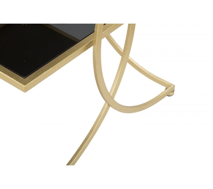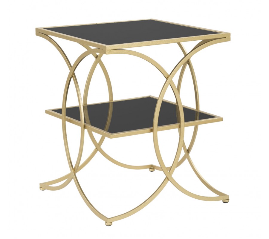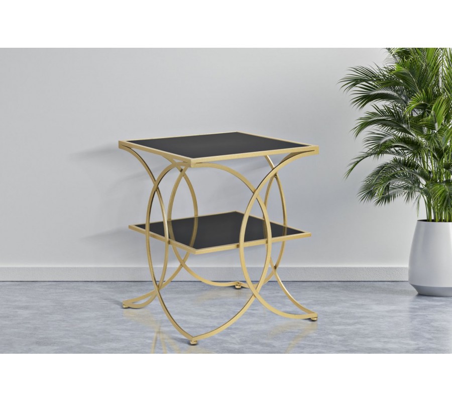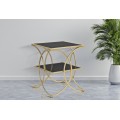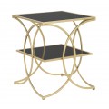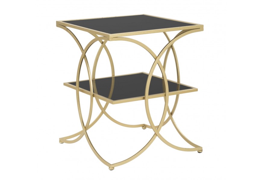 Art deco štvorcový kovový zlatý príručný stolík Aglar s dvomi sklenenými čiernymi doskami 55 cm
