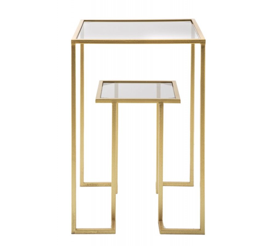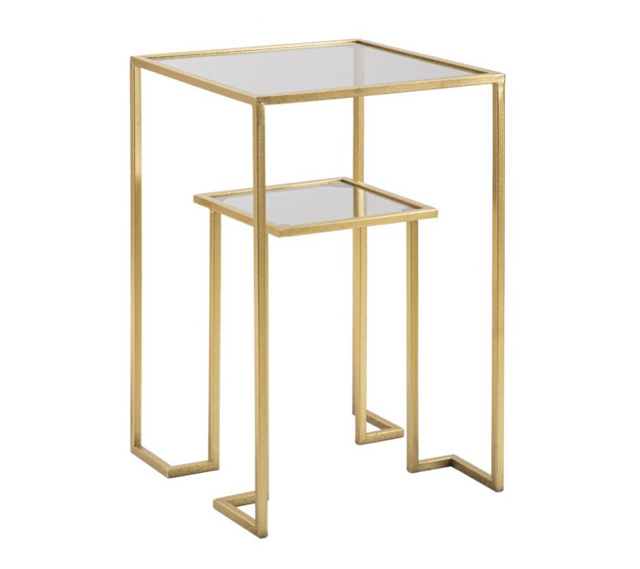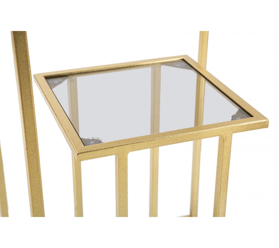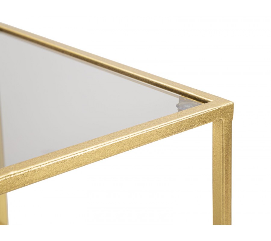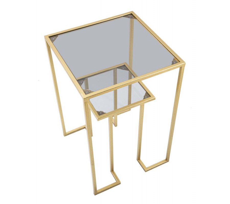 Art deco štvorcový dvojitý príručný stolík Damin s dvomi sklenenými doskami nad sebou s kovovou zlatou konštrukciou 60 cm