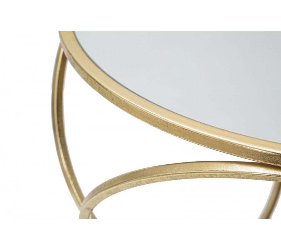 Art deco kovový zlatý geometrický príručný stolík Kelly v okrúhlom tvare s vrchnou doskou so zrkadlom 61 cm