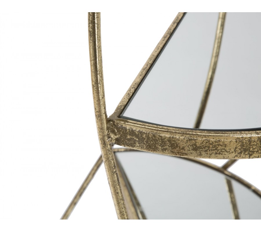 Art deco príručný stolík Celestia s okrúhlou vrchnou doskou zo zrkadlového skla a tromi policami so zlatou konštrukciou 86 cm