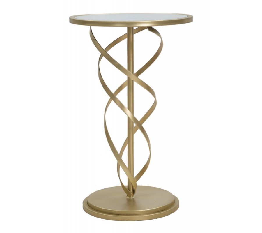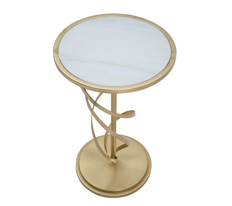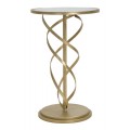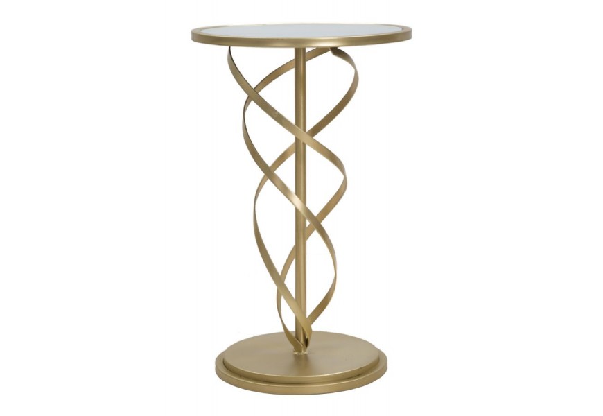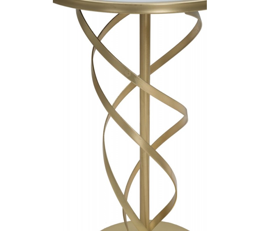 Art deco príručný stolík Amadora so zlatou nohou s špirálovým detailom a bielou sklenenou doskou s mramorovým vzorom 61 cm
