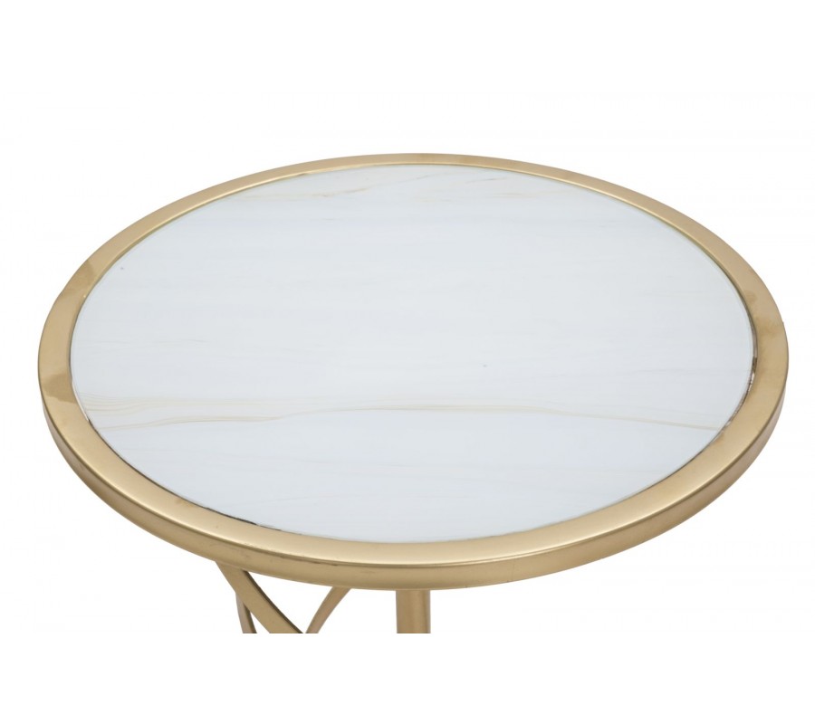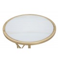 Sklenená doska je dokonale hladká a priesvitná, pričom jej mramorový vzor vyniká a pridáva stolíku jemný, ale sofistikovaný nádych. Stolík je ideálny pre glamour interiéry a hodí sa do obývacej izby, kde bude skvele ladiť s ďalšími kovovými a sklenenými prvkami. Vhodne sa kombinuje s moderným nábytkom, ako aj s ďalšími zlatými a bielymi akcentmi v interiéri, čím sa dosiahne dokonalý elegantný vzhľad. Tento stolík je perfektný pre tých, ktorí hľadajú štýlový, ale zároveň funkčný kúsok nábytku do moderného a luxusného prostredia.