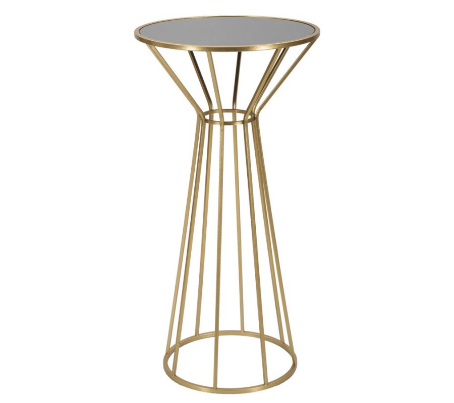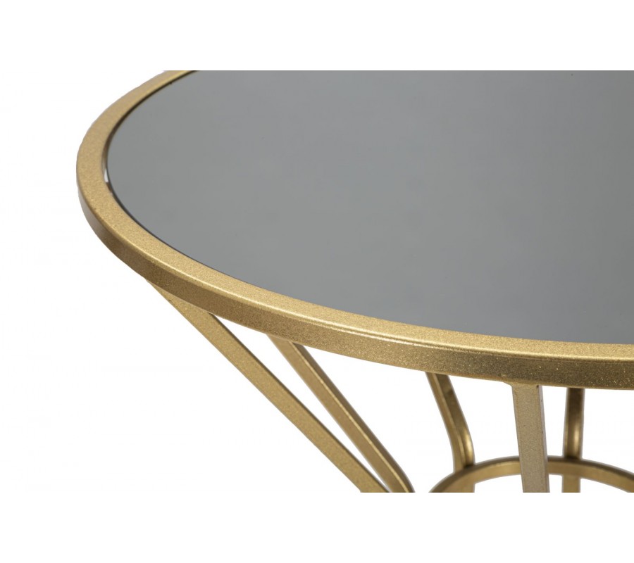Príručný stolík Melinda zaujme svojou geometricky prepracovanou konštrukciou, ktorá je nielen vizuálne atraktívna, ale aj pevná a stabilná. Zlaté kovové nožičky sú elegantne zalomené hneď pri vrchnej doske a spájajú sa v centrálnej kruhovej spojovacej časti, odkiaľ sa plynulo rozširujú až k spodnej kruhovej základni. Tento detail dodáva stolíku štíhly a súčasne dynamický vzhľad.
