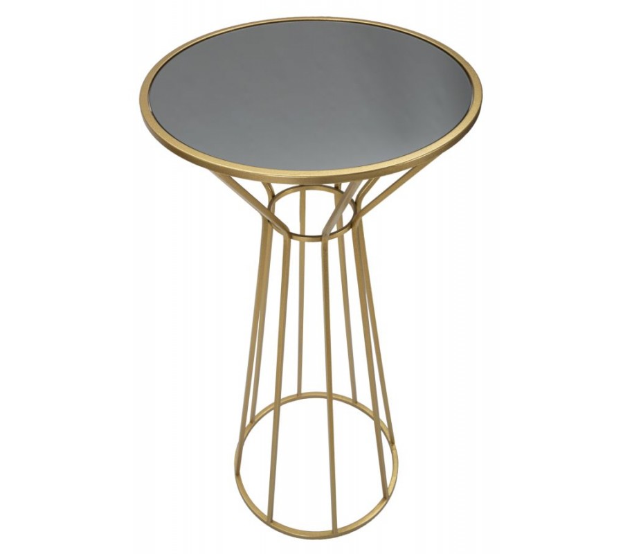 Art deco okrúhly zlatý kovový príručný stolík Melinda s nohou s tyčami a vrchnou sklenenou lesklou doskou 100 cm