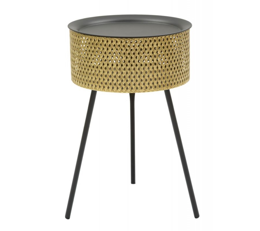Príručný stolík Zafira v sebe spája glamour eleganciu s funkčnosťou. Kombinácia zlatej kovovej konštrukcie a čiernych prvkov vytvára sofistikovaný kontrast, ktorý dodá luxusný nádych každej obývačke či spálni.