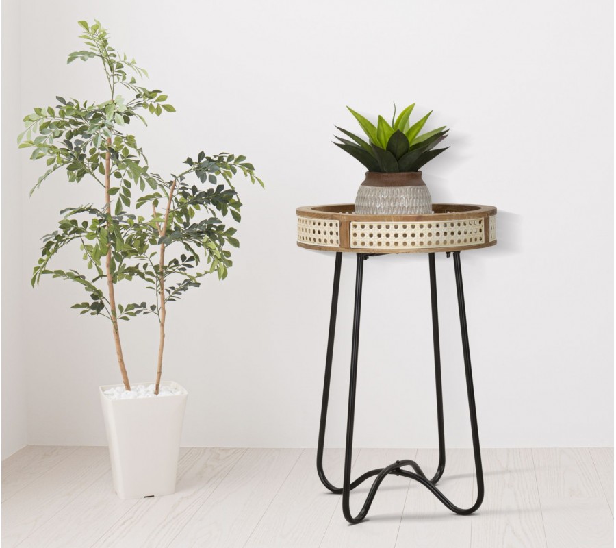 Hodí sa do boho, škandinávskych alebo prírodne ladených interiérov. Výborne sa kombinuje s ratanovými kreslami, dreveným nábytkom a textíliami v neutrálnych farbách. Ideálny ako odkladací stolík do obývačky, spálne alebo predsiene, kde poslúži ako štýlový a funkčný doplnok.