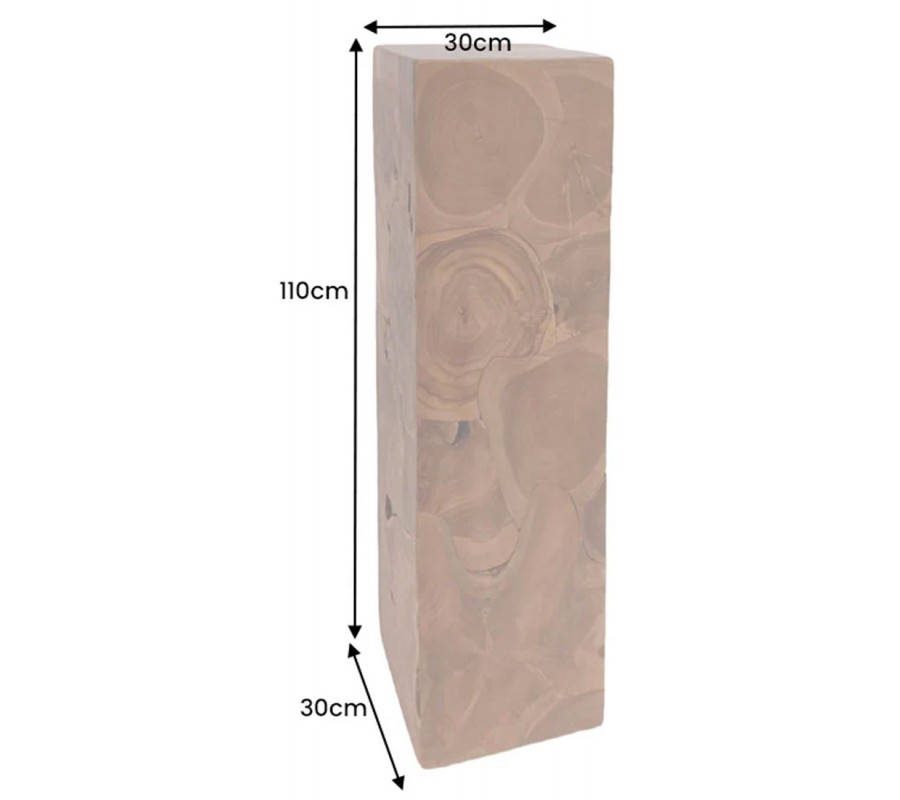 Dizajnový masívny štvorcový dekoratívny podstavec Atlas z teakového dreva v hnedej farbe 110 cm