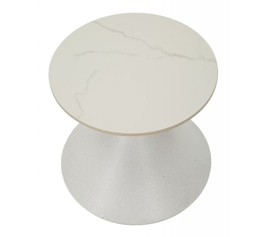 Minimalistický okrúhly mramorový biely príručný stolík Edal z keramiky s kužeľovou nohou 42 cm