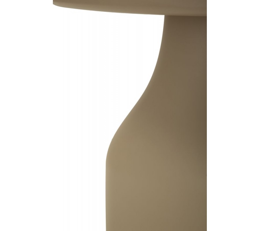 Telo stolíka plynule prechádza z kužeľového tvaru v hornej časti do stabilnej štvorcovej základne, čo mu dodáva jedinečný vzhľad a pevnosť. Vyrobený je z ľahkého, odolného plastu s keramickým efektom, vďaka čomu je praktický a nenáročný na údržbu.
