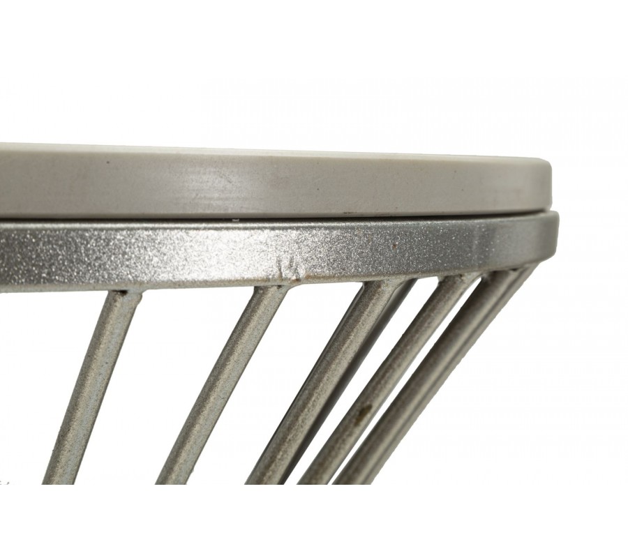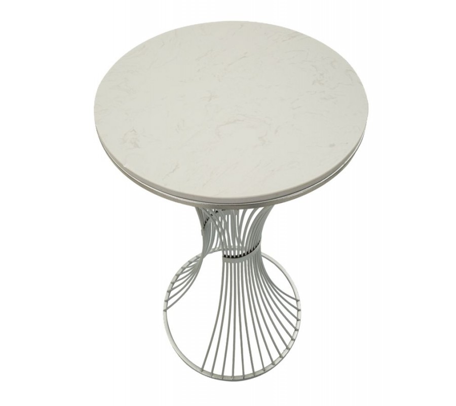 Vrchná doska stolíka má okrúhly tvar a je vyrobená z mramoru v bielo sivej farbe so sivými žilkami, ktoré mu dodávajú luxusný vzhľad. Pre väčšiu pevnosť je doska podložená MDF výstužou, na ktorej je umiestnená samotná mramorová vrstva.