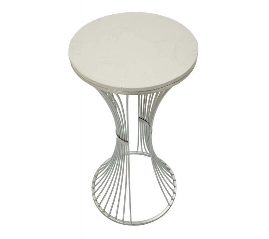 Glamour chrómový okrúhly kovový mramorový príručný stolík Nelia z tenkých tyčí v tvare presýpacích hodín 79 cm