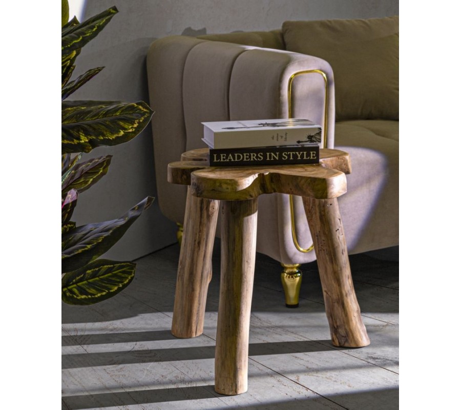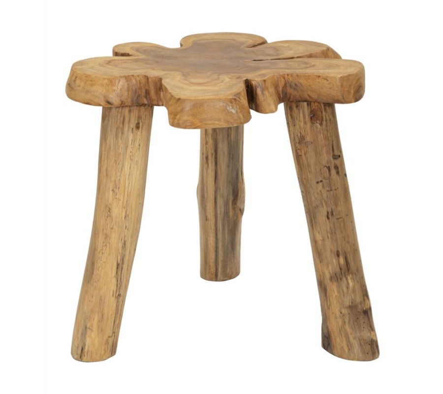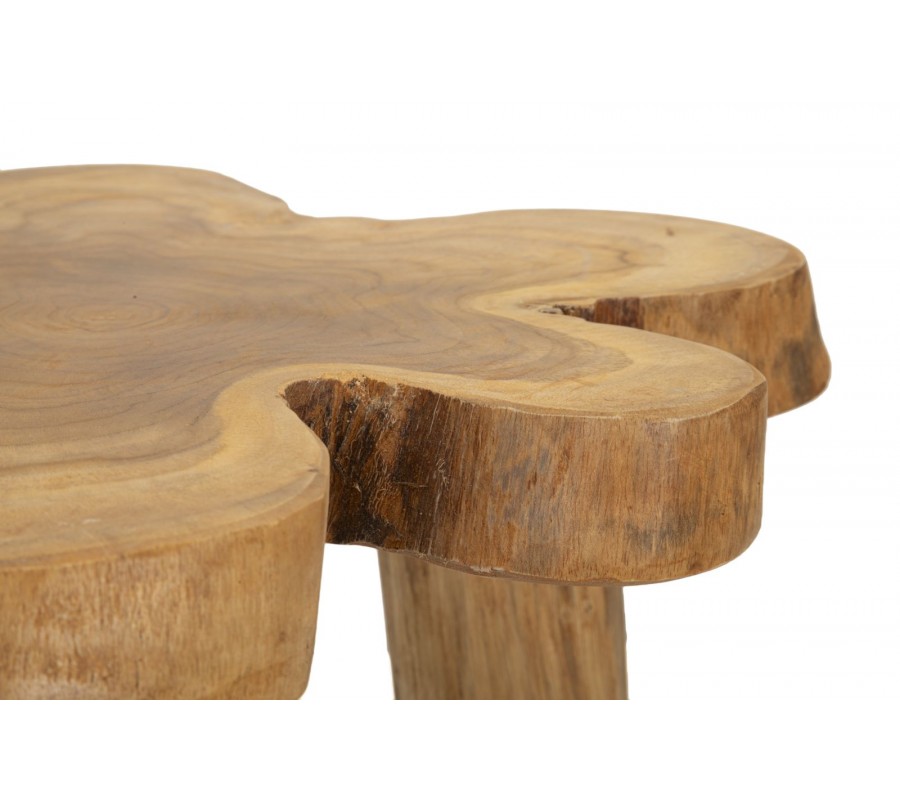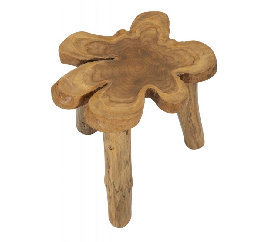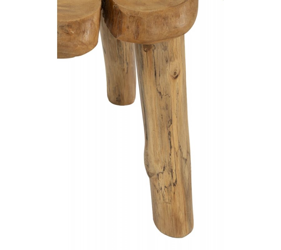 Masívna hnedá atypická taburetka Tara s tromi nohami s prírodným vzhľadom z teakového dreva 50 cm