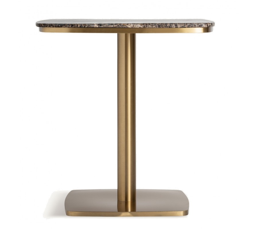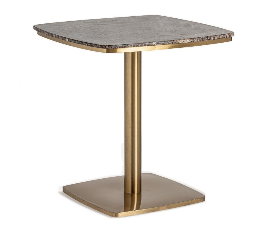 Luxusný art deco štvorcový mramorový hnedý príručný stolík Artis s oblými rohmi a kovovou zlatou nohou 77 cm
