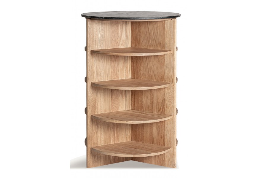 Luxusný škandinávsky okrúhly príručný stolík Naria z masívneho dubového dreva s vrchnou čiernou mramorovou doskou