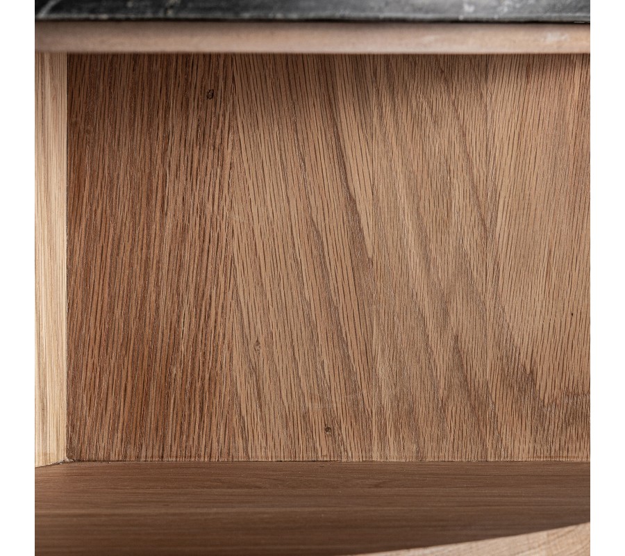 Výnimočné spojenie prírodného dubového dreva a mramoru robí stolík Naria exkluzívnym kúskom, ktorý v interiéri pôsobí sofistikovane a nadčasovo.