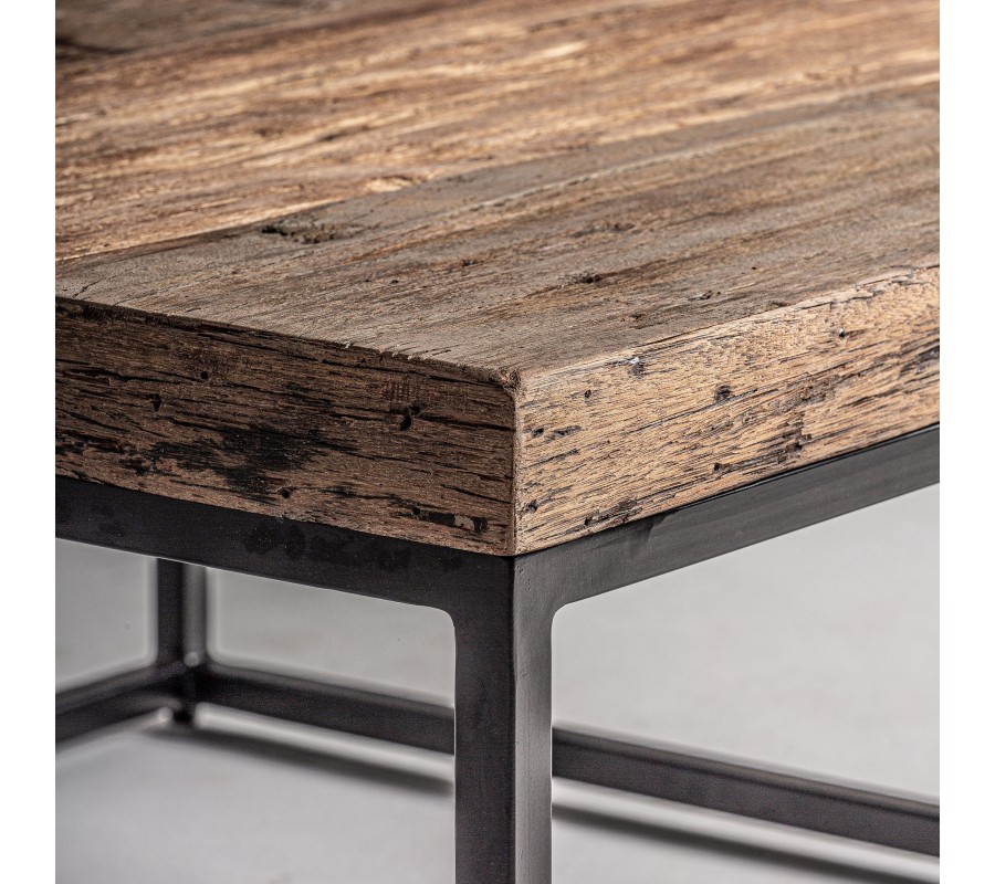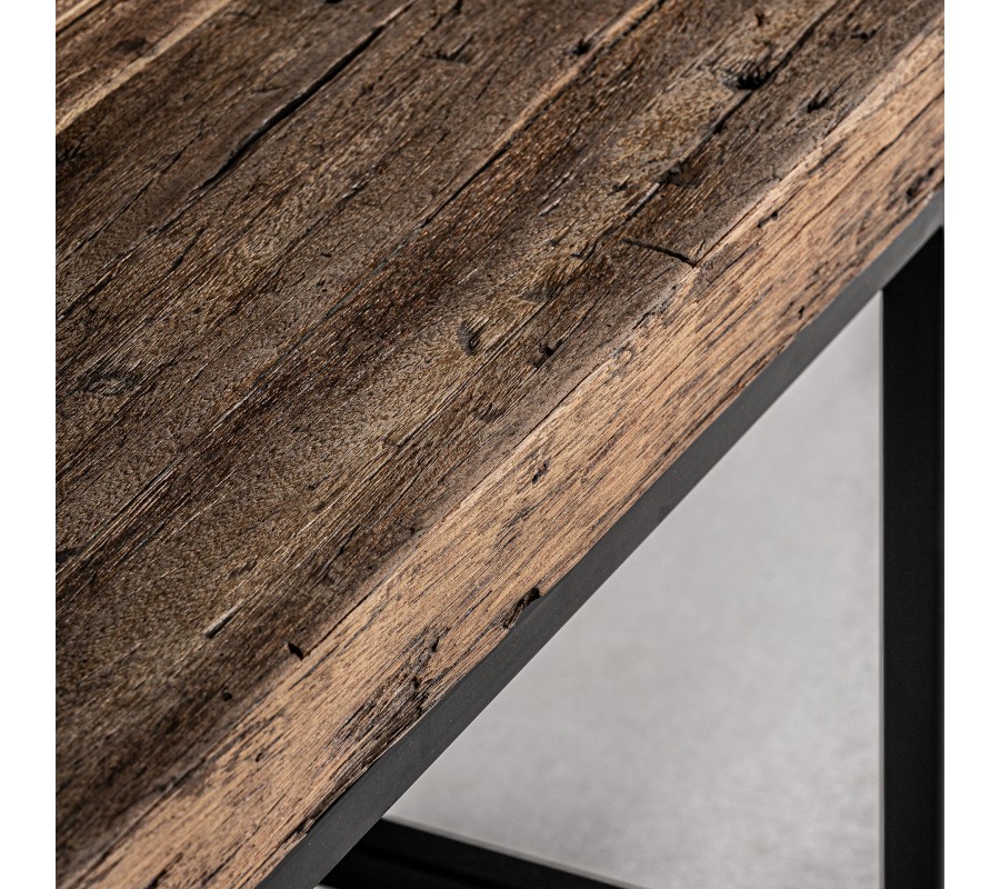 Príručný stolík Draven je kompaktný nábytkový doplnok v industriálnom a masívnom štýle, ktorý upúta svojím kontrastným prevedením. Má štvorcový tvar a čisté línie, ktoré zvýrazňujú prirodzenú krásu dreva v kombinácii s kovom.