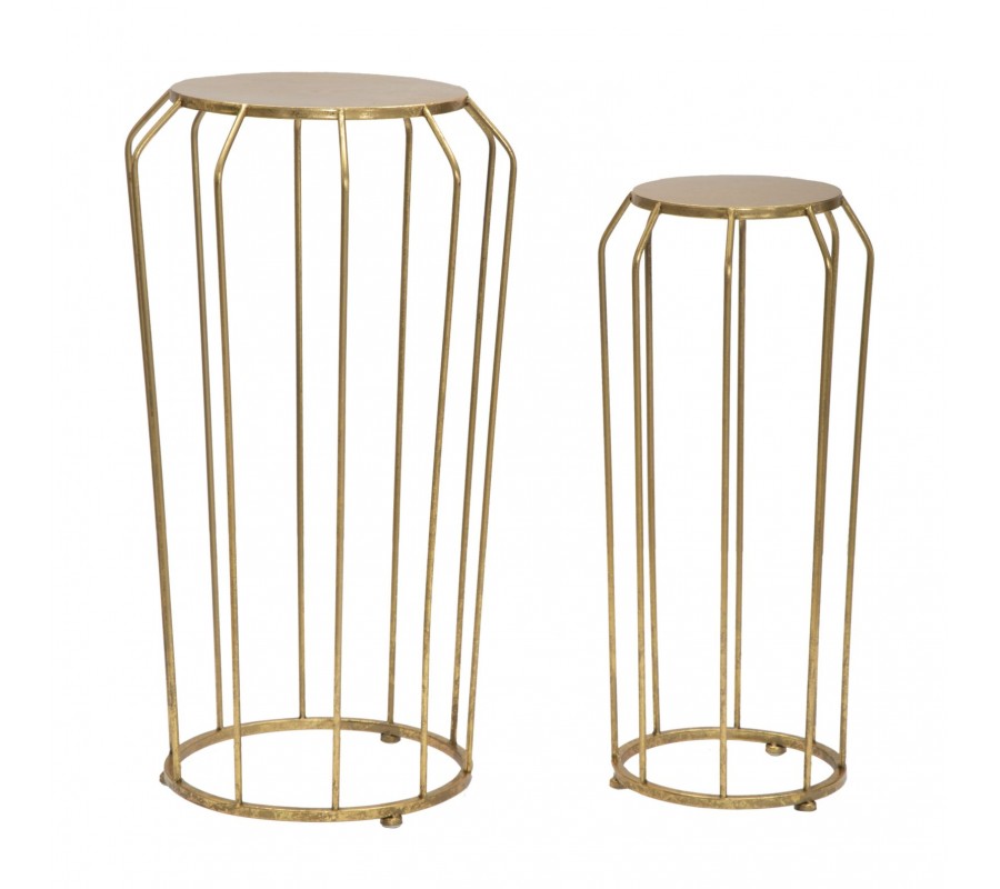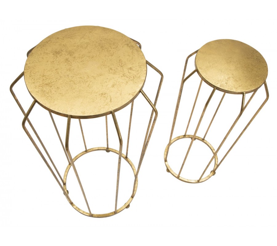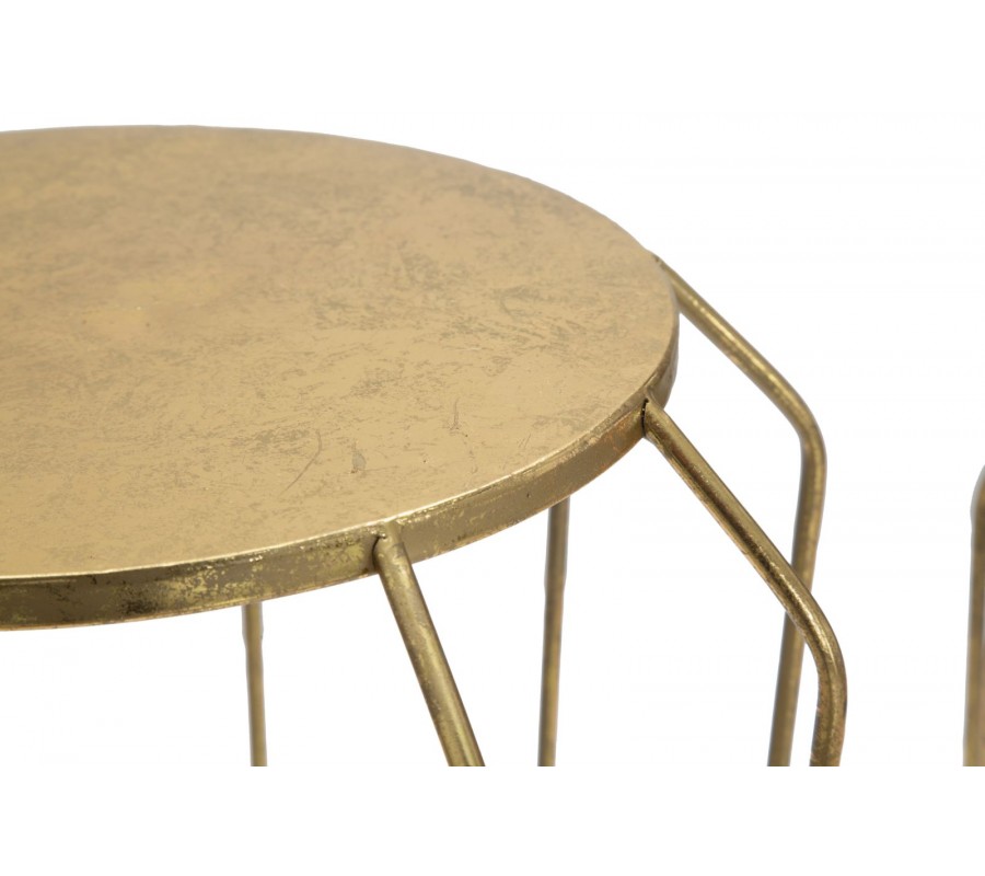 Glamour sada okrúhlych zlatých kovových príručných stolíkov Delizia s atypickými nohami a kruhovou základňou 70 cm