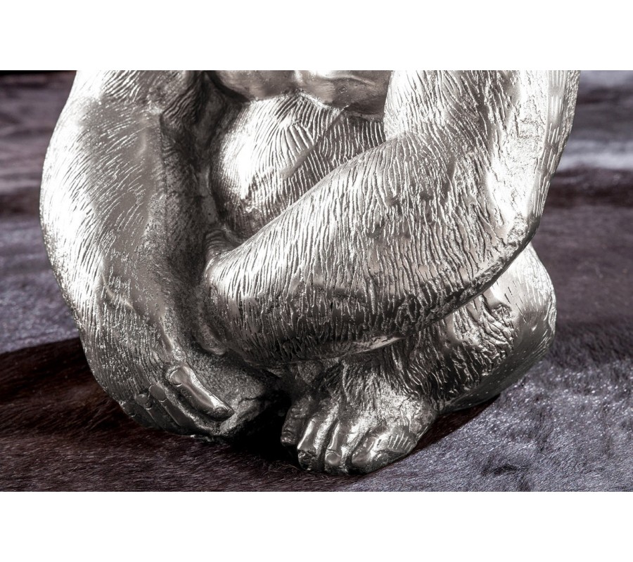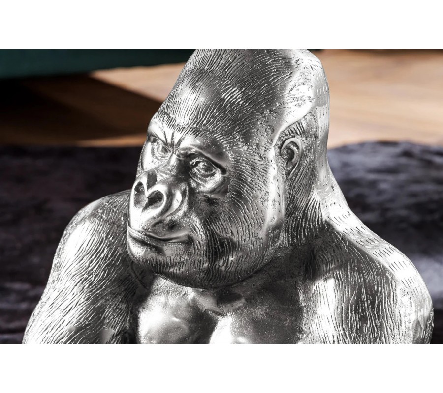 Príručný stolík Tierra Glam je extravagantným kúskom, ktorý spája umelecký art deco štýl s odvážnym glamour výrazom. Vyniká unikátnou podstavou v podobe sediacej gorily, ktorá je z kovu v lesklom striebornom prevedení. Tento netradičný dizajn v sebe nesie silu, charizmu a štipku humoru, čím sa stáva centrom pozornosti každého interiéru.