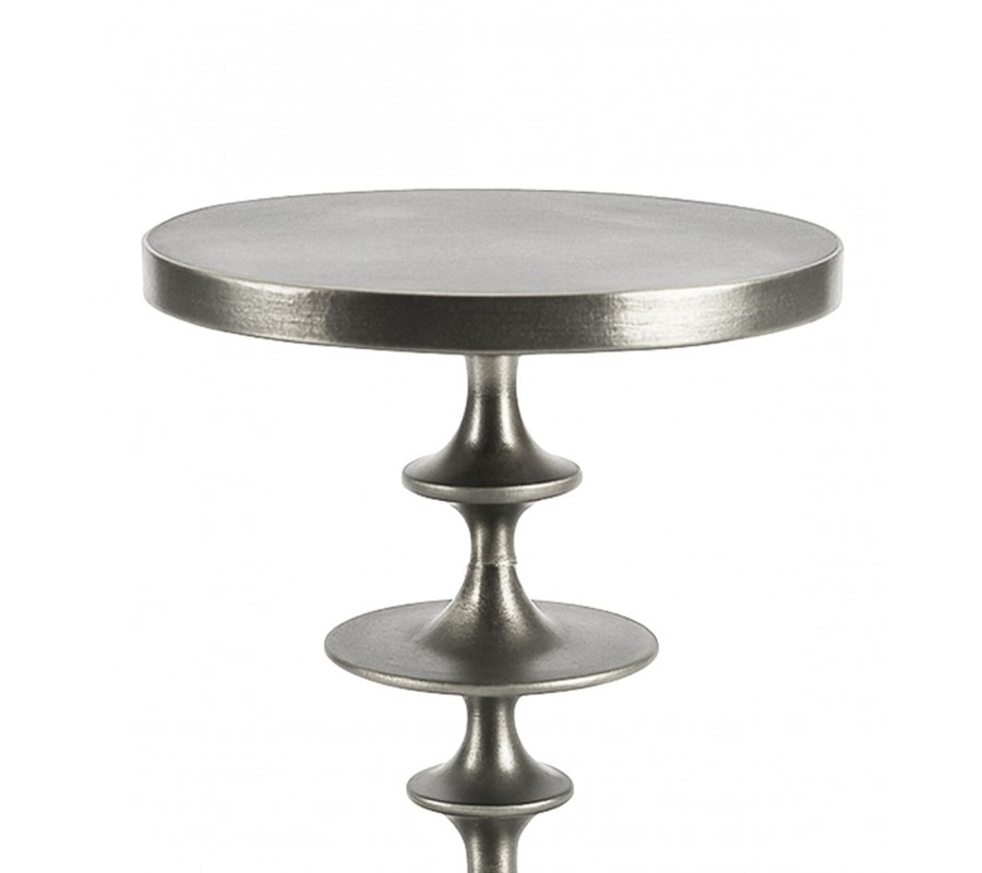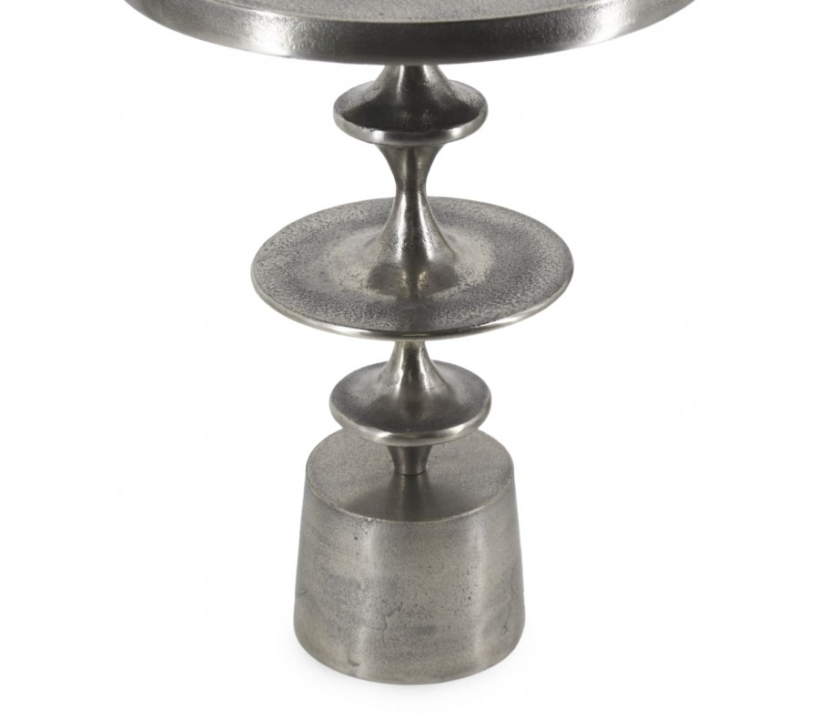 Noha je v spodnej časti ukončená mohutnou podstavou v tvare zrezaného kužeľa, ktorá zabezpečuje výbornú stabilitu. Stolík je vyrobený z kovovej zliatiny, čo umožňuje precízne tvarovaný kovový dizajn a zároveň odľahčenú váhu.