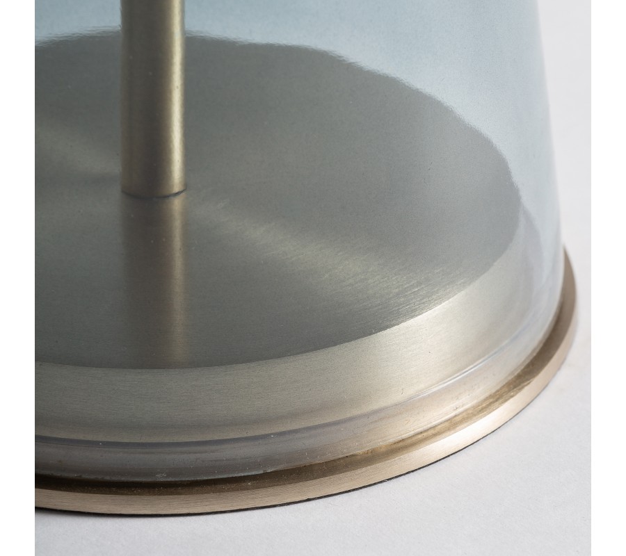 Noha stolíka má okrúhly pôdorys a je vyrobená z kombinácie kovu a skla. Dominuje jej kužeľovitý priehľadný prvok v modrej farbe. Sklo je upravené gradientovým efektom, takže farba je najtmavšia vo vrchnej časti a smerom dole sa zosvetľuje.