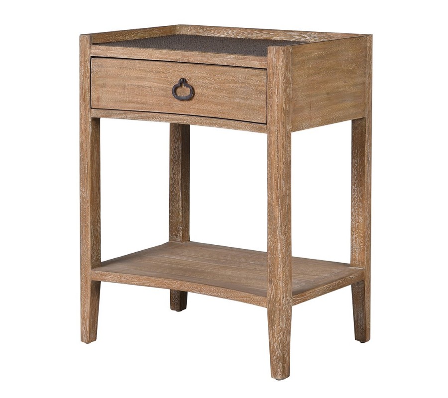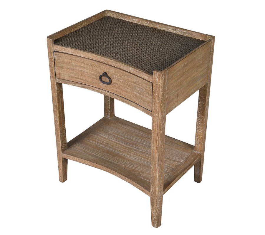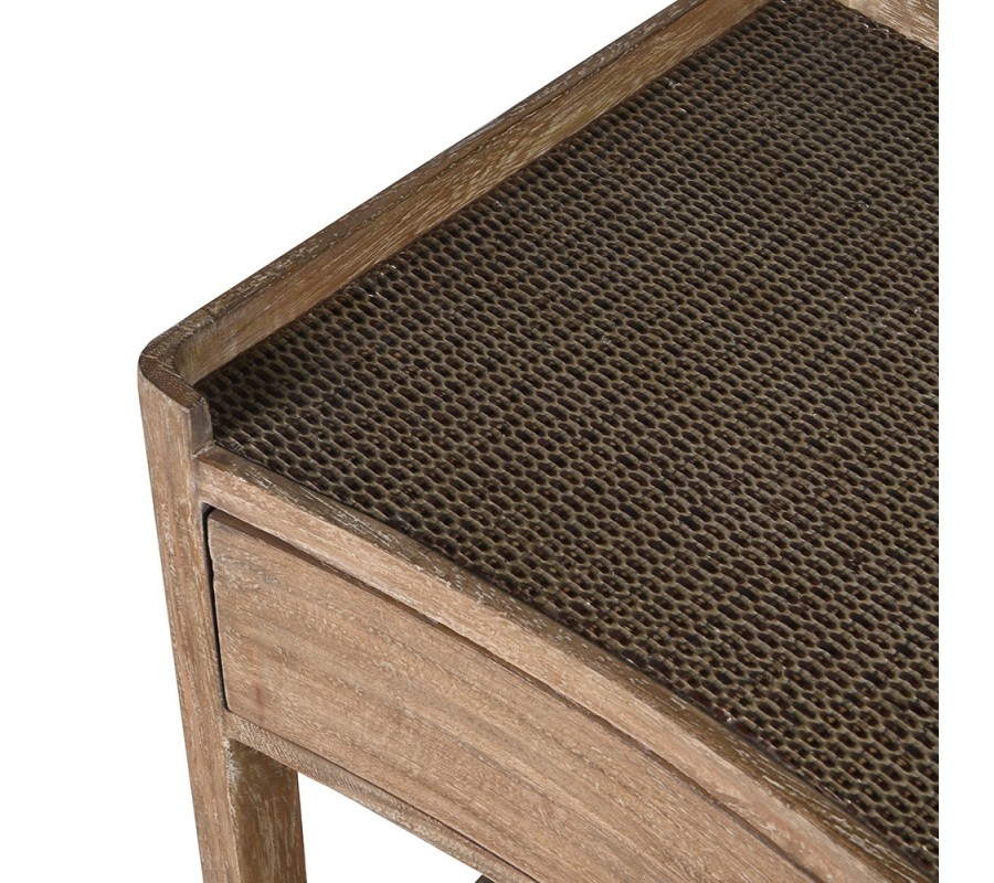 Príručný stolík Vento je štýlový a funkčný kus nábytku v koloniálnom až rustikálnom štýle, ktorý spája prirodzenú štruktúru dreva s dekoratívnym ratanovým povrchom. Pôsobí autenticky, hrejivo a do interiéru vnáša prirodzený charakter.