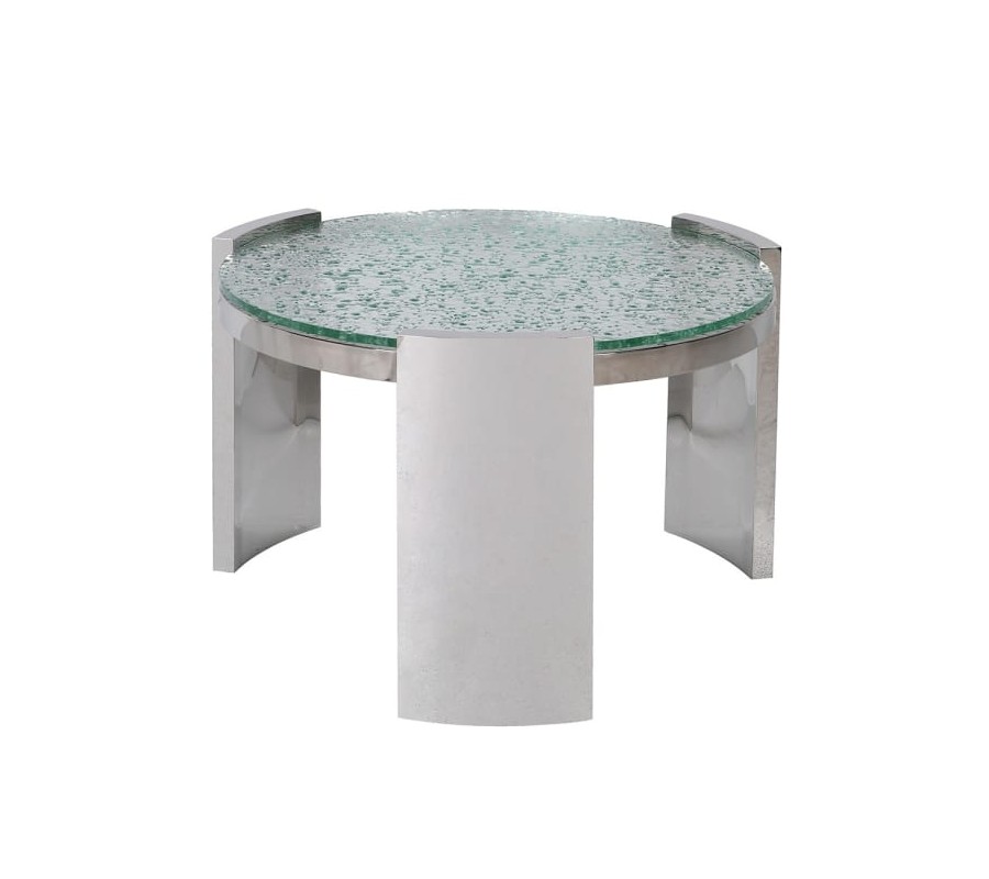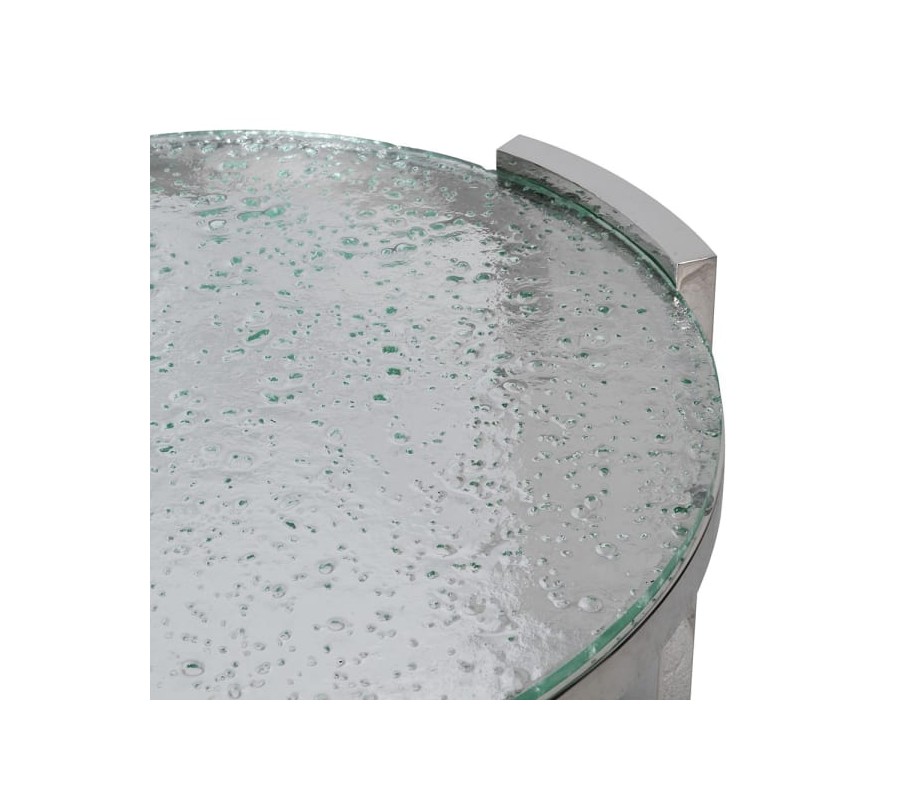 Luxusný glamour chrómový okrúhly príručný stolík Auron s doskou zo skla s bublinkovým efektom a tromi nožičkami 73 cm