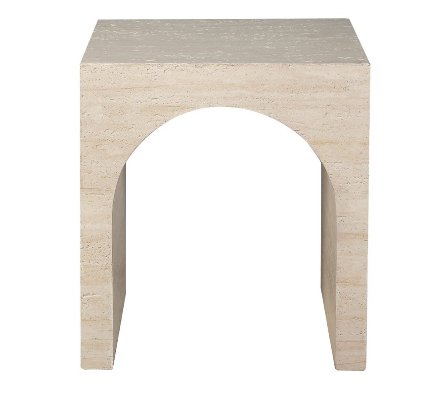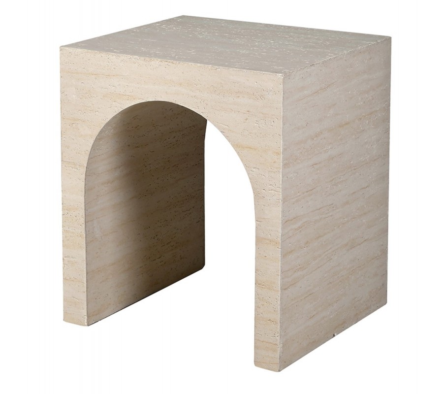 Moderný príručný stolík Cube Travertino s oblúkovým dizajnom v krémovej farbe 52 cm