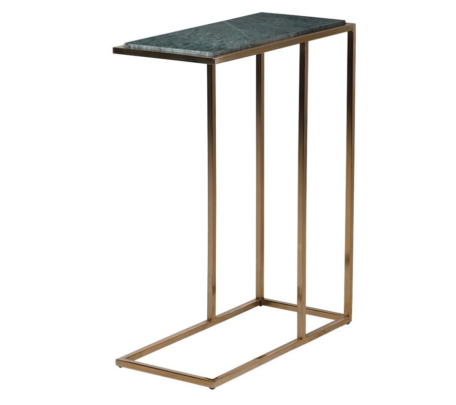 Príručný stolík Nashik prinesie do vašej obývačky elegantnú art deco estetiku s luxusným glamourovým leskom. Zelená doska vytvorí svieži farebný akcent a oceníte aj praktický dizajn, vďaka ktorému je možné stolík pohodlne prisunúť ku kreslu či sedačke.
