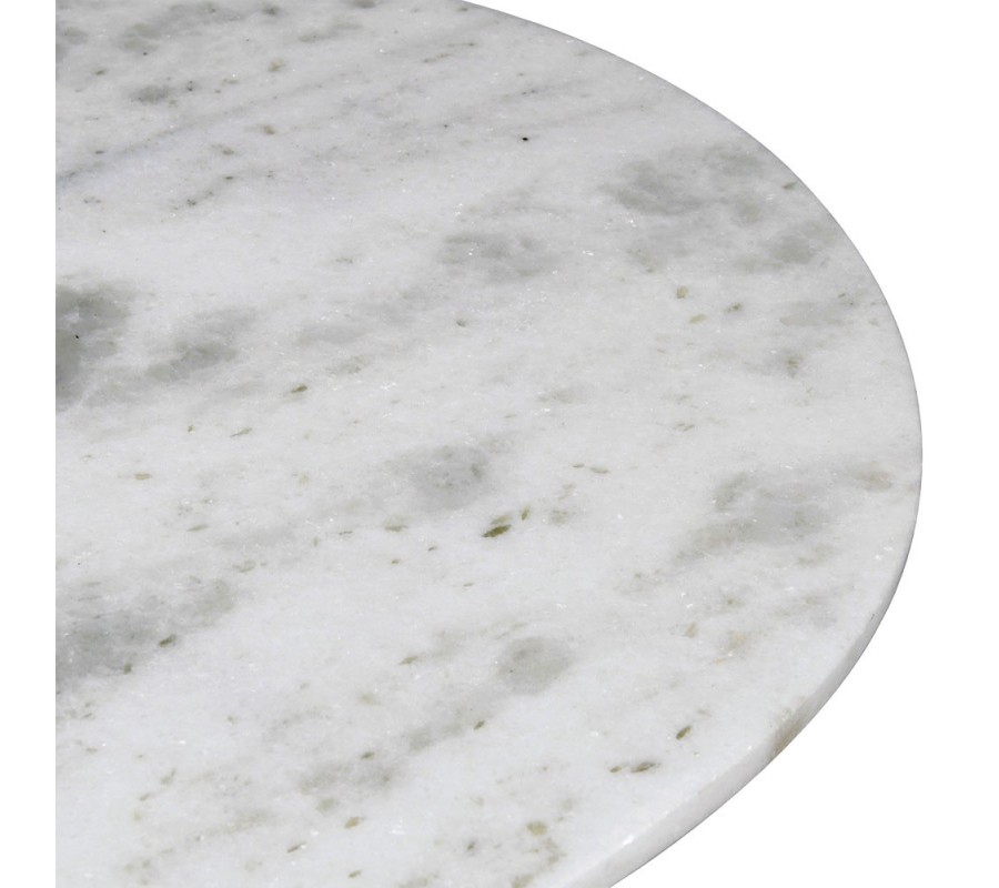 Konštrukcia stolíka je vyrobená z nehrdzavejúcej ocele v zlatej farbe s lesklým povrchom. Štyri štíhle nožičky sú v spodnej časti pevne prepojené priečkou do tvaru x, čo dodáva stolíku stabilitu a optickú ľahkosť. Zlatý lesk kovu krásne ladí s prirodzenou textúrou mramoru a podčiarkuje jeho luxusný charakter.