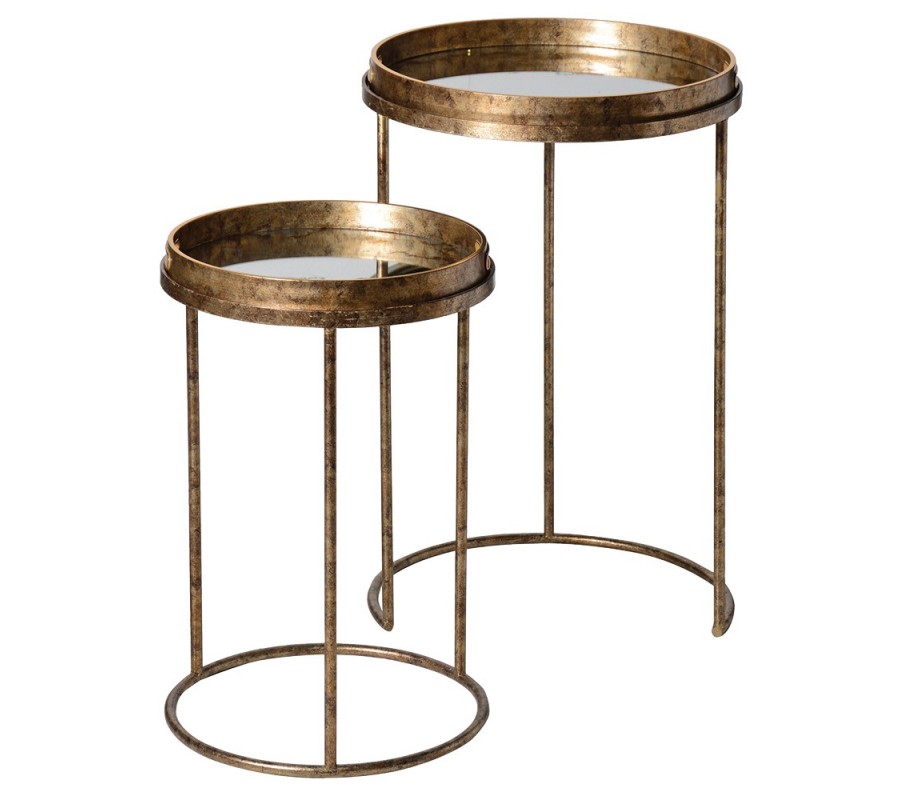 Sada príručných stolíkov Amritsar dodá vašej obývačke unikátny vintage prvok. Zlatá farba a lesklé zrkadlové dosky pomôžu priestor presvetliť a oceníte aj praktickú možnosť zasunutia menšieho stolíka pod väčší.