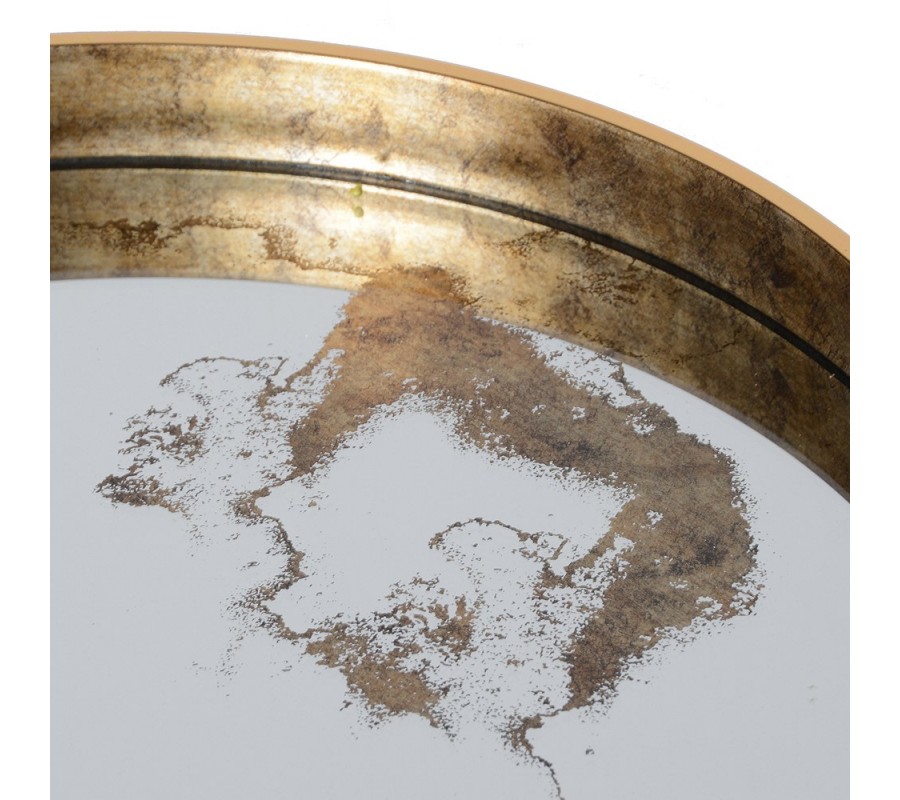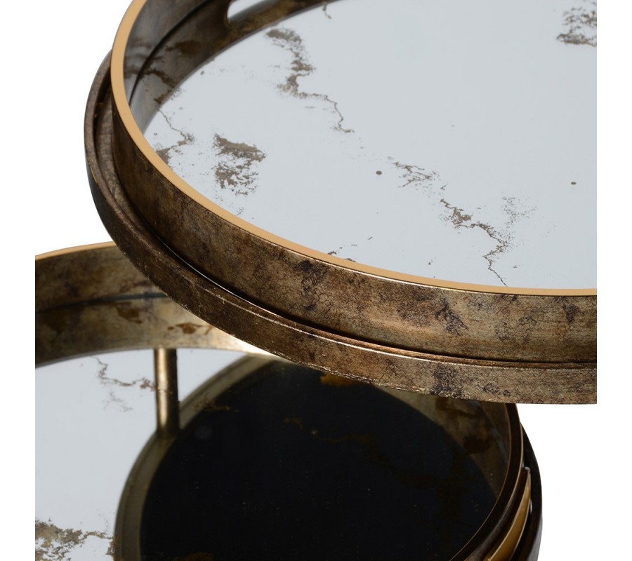 Dizajnová vintage sada príručných stolíkom Amritsar s okrúhlymi zrkadlovými doskami so zlatou konštrukciou s patinou 72 cm