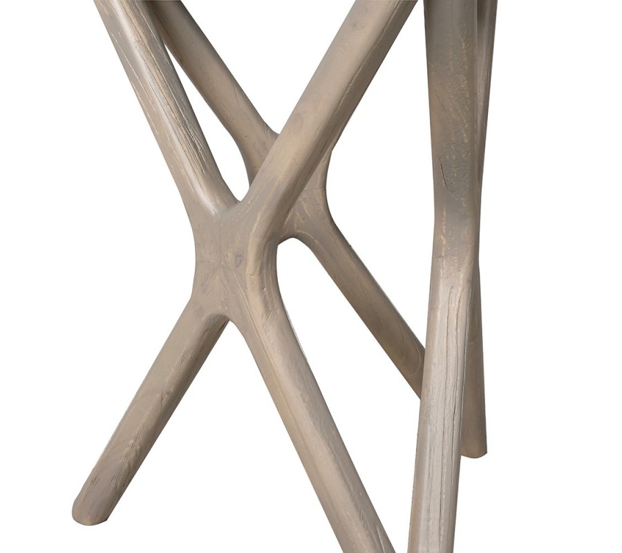Dizajnu dominuje podstava z dyhovaného dreva, ktorá vás očarí svojou vzdušnou a dynamickou siluetou. Je zložená z troch prvkov v tvare X prepojených vrcholmi. Pôsobí tak geometrickým, až skulpturálnym dojmom. Línie a uhly sú zjemnené zaobleniami, ktoré vytvárajú plynulý a harmonický vizuál a celková v strede zúžená silueta prináša do kompozície eleganciu.