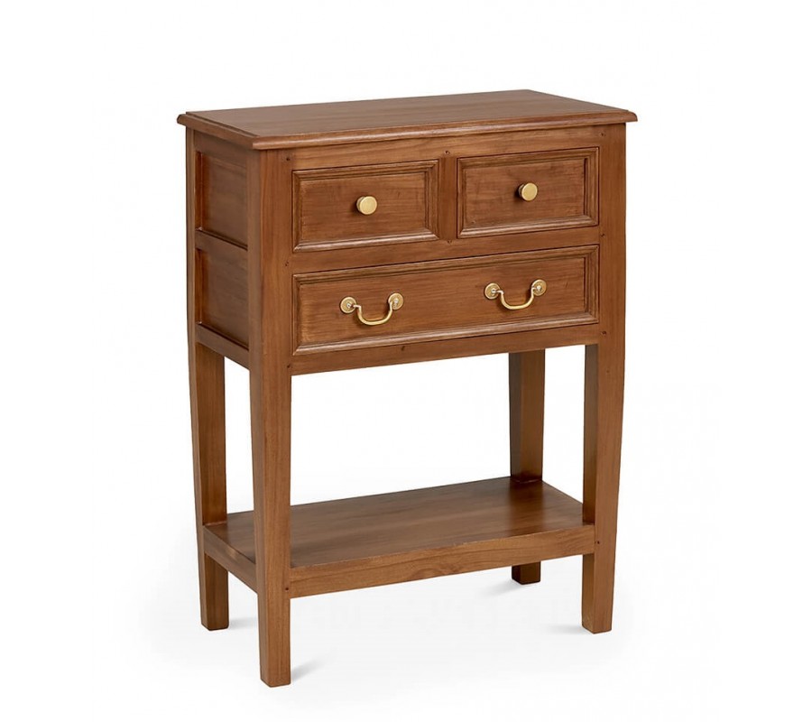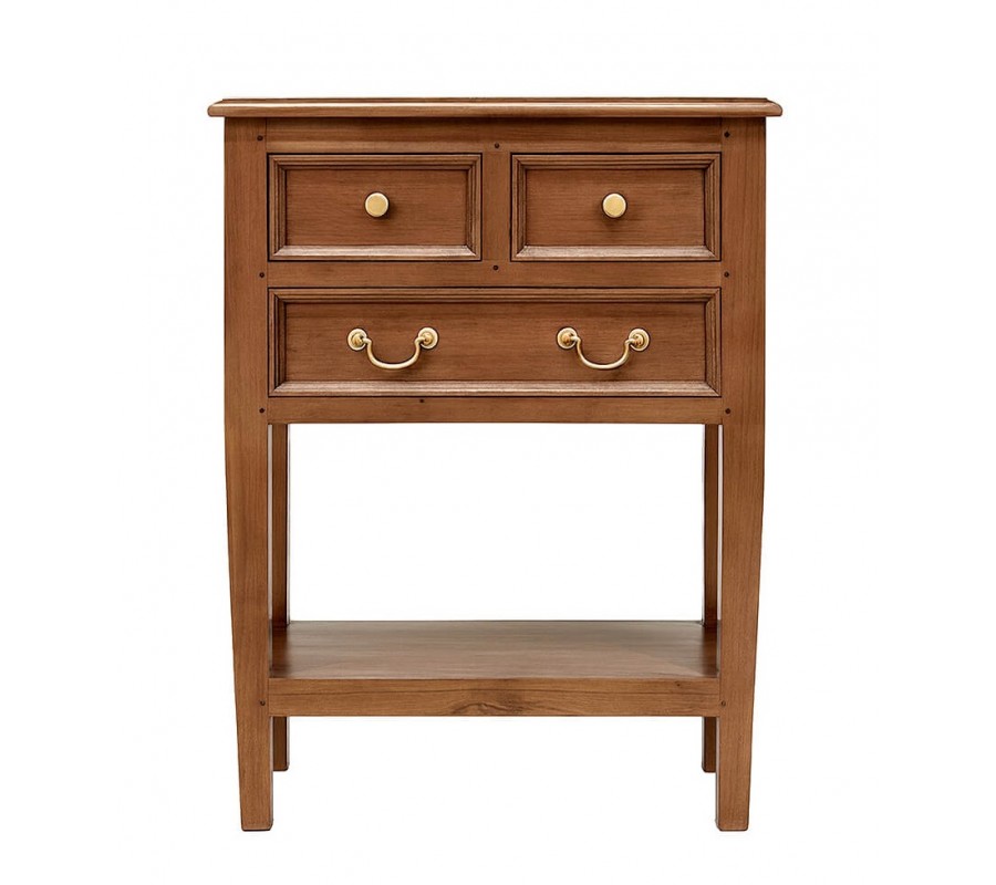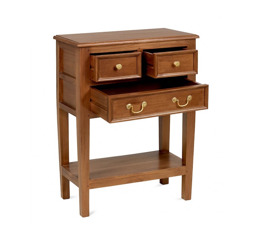 Luxusný klasický obdĺžnikový príručný stolík Donelly s tromi zásuvkami a policou z hnedého masívneho mahagónového dreva 83 cm