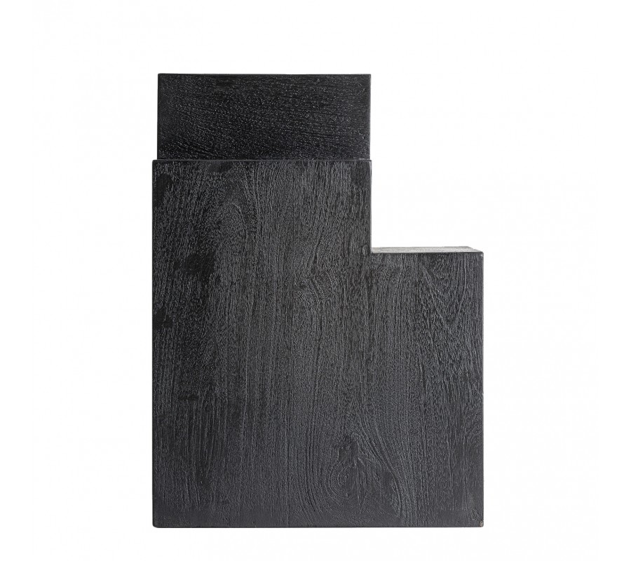 Luxusný art deco geometrický masívny čierny príručný stolík Cubia Nera zaujme na prvý pohľad svojím kubistickým, architektonickým vzhľadom a výraznou kresbou dreva. Je vyrobený z masívneho mangového dreva v hlbokom čiernom odtieni, ktorý zvýrazňuje prirodzenú štruktúru letokruhov a dodáva povrchu hĺbku a dramatický charakter.
