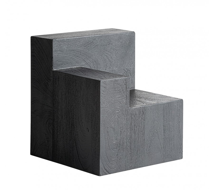 Luxusný masívny príručný stolík Cubia Nera v sebe spája art deco eleganciu s výraznou kubistickou geometriou. Vyrobený je z masívneho mangového dreva v sýtom čiernom prevedení, ktoré podčiarkuje prirodzenú kresbu letokruhov a dodáva povrchu hĺbku aj autentický charakter. Každý detail dreva je viditeľný – štruktúra nie je potlačená, ale práve naopak zvýraznená, čo stolíku dodáva surový a zároveň luxusný výraz.