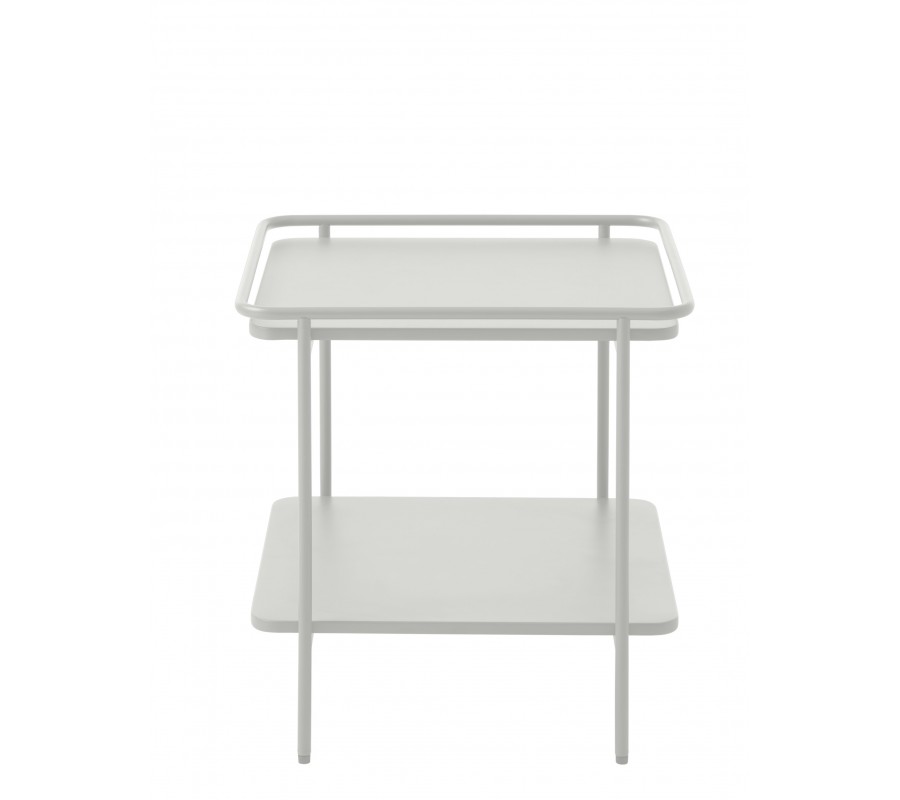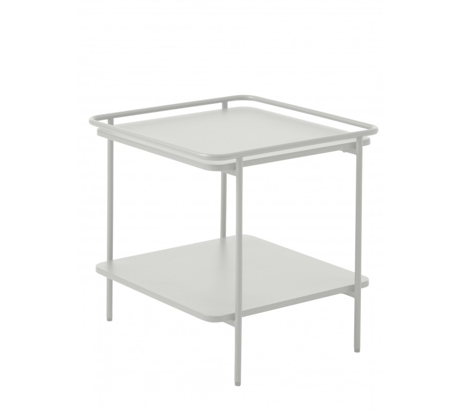 Moderný štvorcový príručný stolík Koge s policou z kovu vo svetlom sivom odtieni s teplým nádychom 45 cm