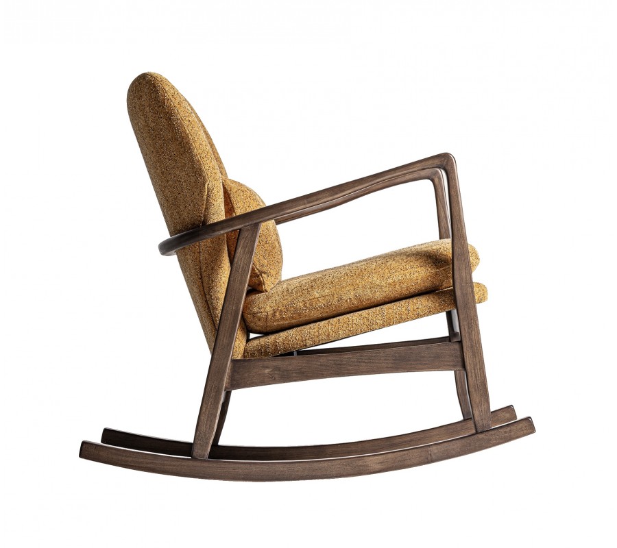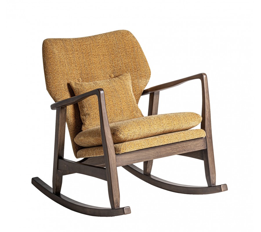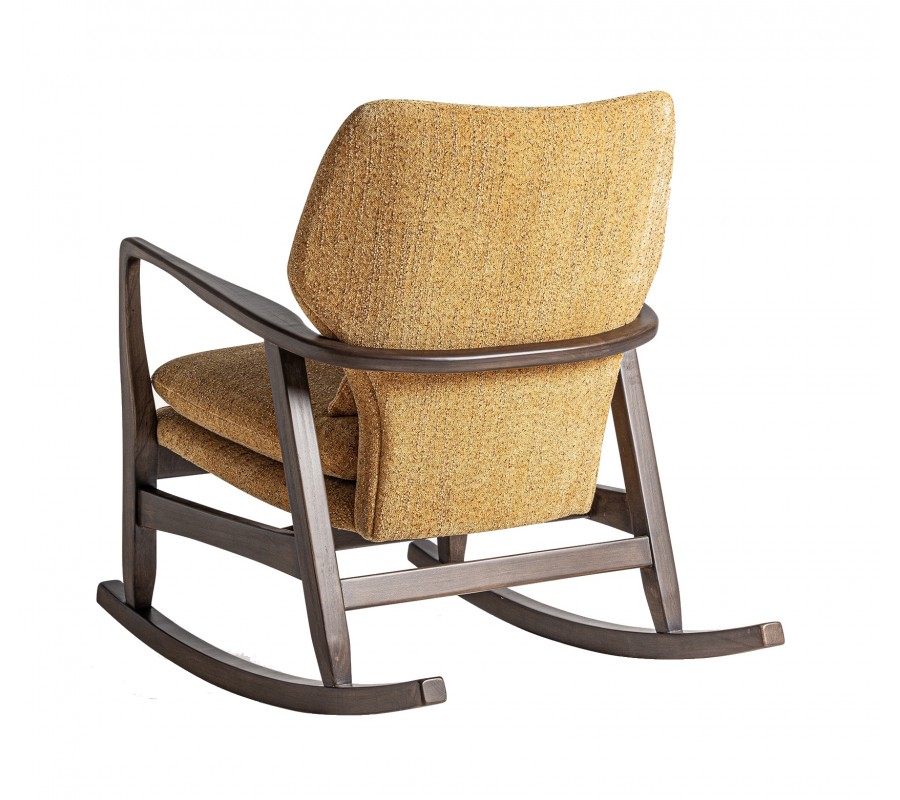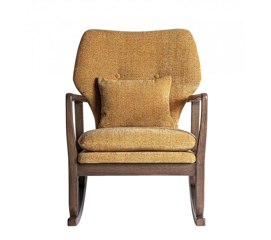 Luxusné dizajnové hojdacie kreslo Chiara s masívnym hnedým rámom a okrovým žltým štruktúrovaným poťahom 85 cm