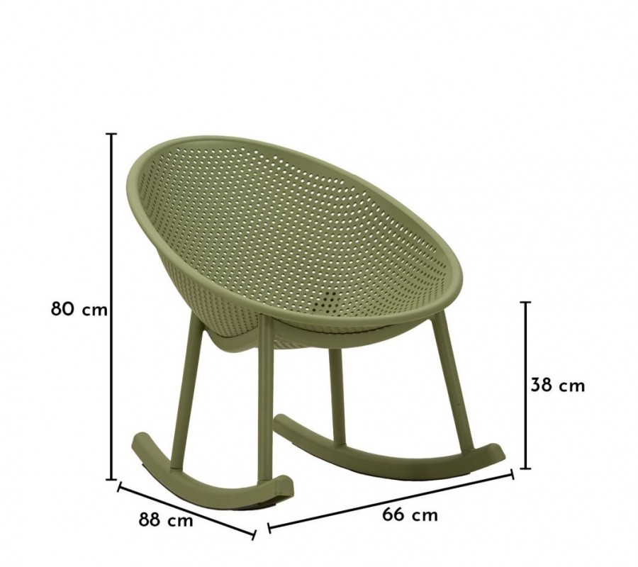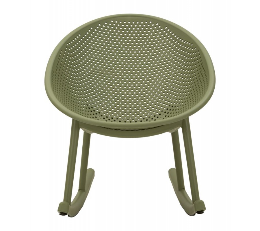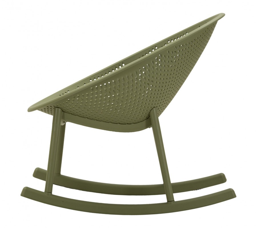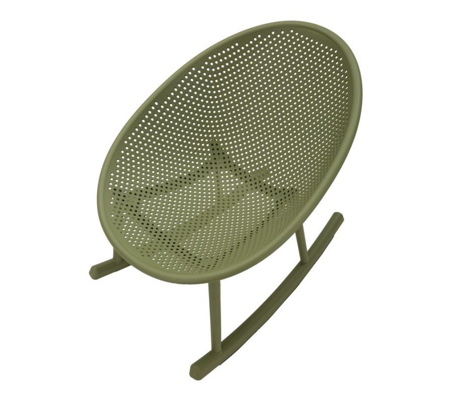Moderné zelené okrúhle hojdacie kreslo Isola s kompaktným sedadlom a opierkou s perforovaným dizajnom 66 cm