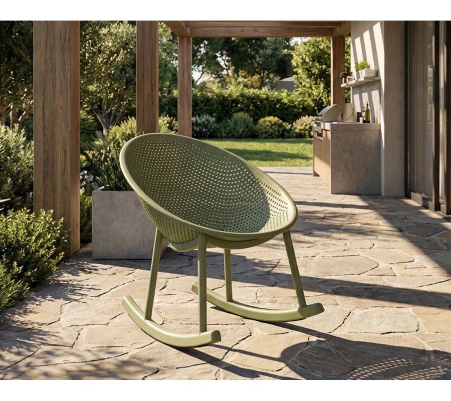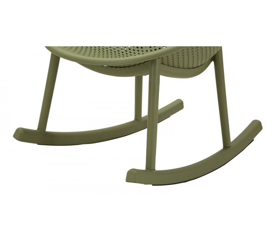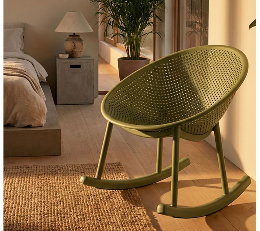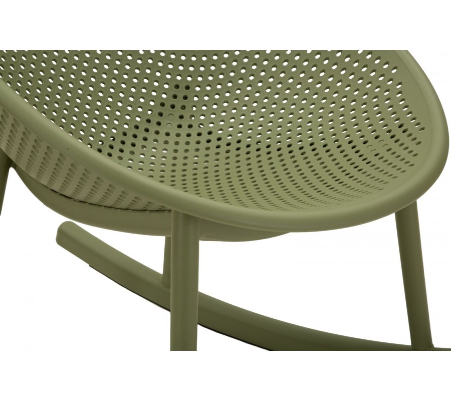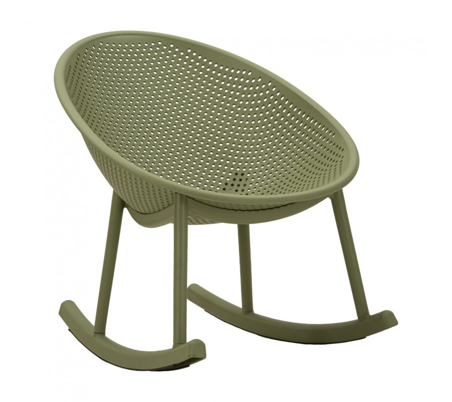 Moderné zelené okrúhle hojdacie kreslo Isola s kompaktným sedadlom a opierkou s perforovaným dizajnom 66 cm