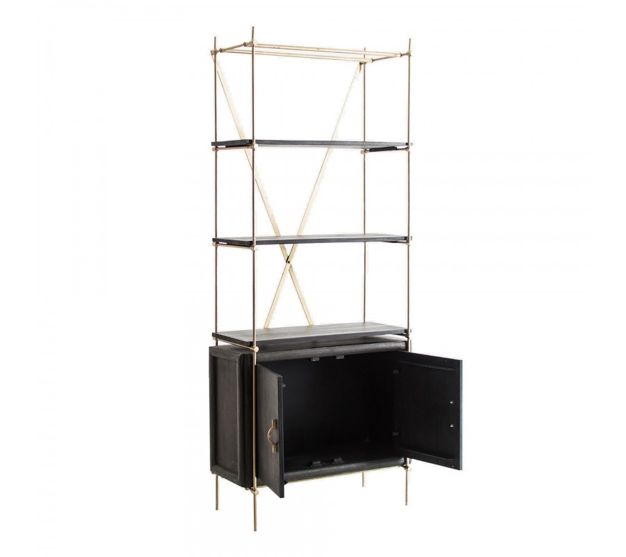 Art-deco luxusná knižnica Akanke tmavohnedá s tromi policami 190 cm