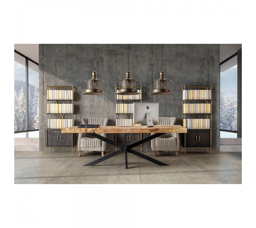 Art-deco luxusná knižnica Akanke je vyrobená z prírodného dreveného masívu v tmavohnedom prevedení. Tvoria ju tri poličky, ktoré dopĺňa pevná kovová konštrukcia v zlatej farbe zabezpečujúca dostatočnú nosnosť. V spodnej časti sa nachádza úložný priestor s dvierkami, ktorý výborne poslúži na odkladanie vecí, ktoré nechcete mať vystavené či ktoré chcete ochrániť pred prachom. Knižnica Akanke sa výborne kombinuje s inými prvkami v art-deco či industrálnom štýle, rovnako ako aj ďalším nábytkom z masívneho dreva v tmavšom prevedení. Skvelo a prakticky doplní vašu obývačku či kancelárske priestory, kde zaujme svojím vzhľadom elegantne prepájajúcim funkčnosť a estetický dizajnový vzhľad!