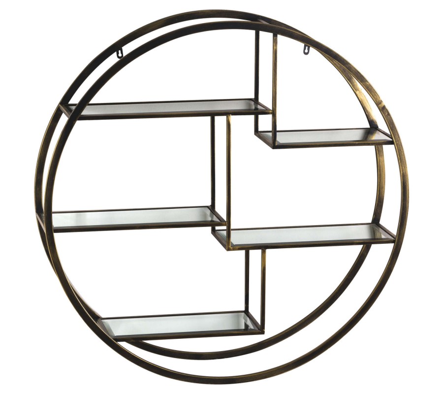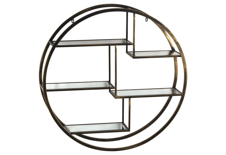 Táto jedinečná art-deco polička Gina je skvelým kúskom do každého art-deco či moderne ladeného interiéru. Zaujme najmä vďaka svojmu netradičnému dizajnu a kruhovému tvaru. Je vyrobená z piatich individuálnych poličiek zo skla, ktoré sú prepojené štýlovou kovovou konštrukciou farby antickej mosadze. Tento kúsok pôsobí skutočne originálne a vo vašom modernom domove sa bude skvelo vynímať! Kombinovať sa dá s rôznymi kovovými či sklenenými doplnkami, alebo nábytkom v žiarivých, výrazných farbách.