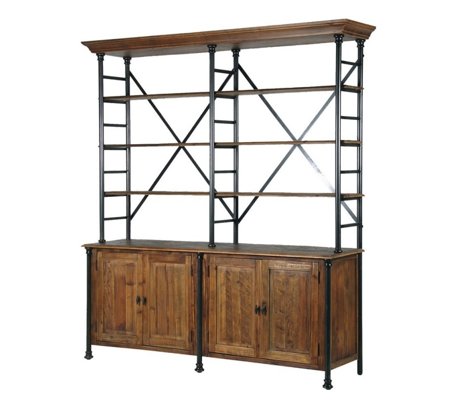 Industriálny regál Portio z masívu a kovu 220cm so šiestimi policami a dvomi skrinkami