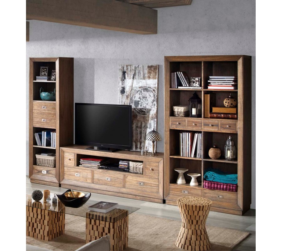 Koloniálna knižnica Merapi z masívneho dreva mindi so zásuvkami a poličkami 190cm